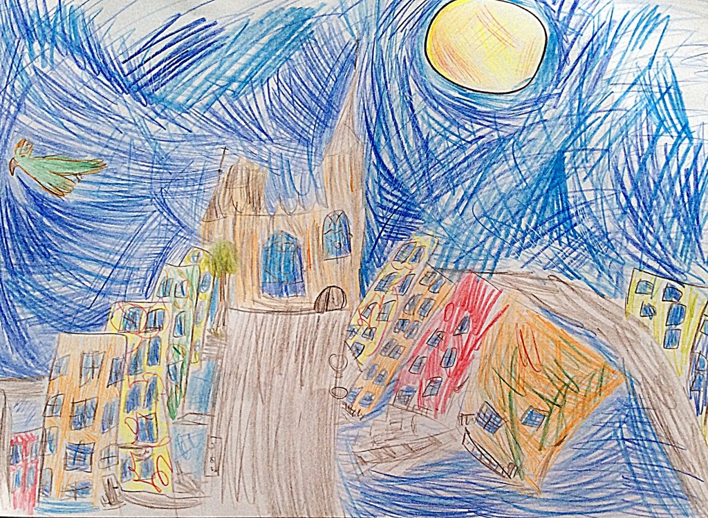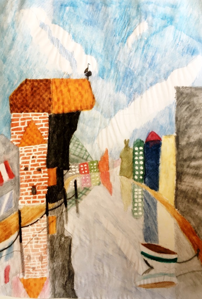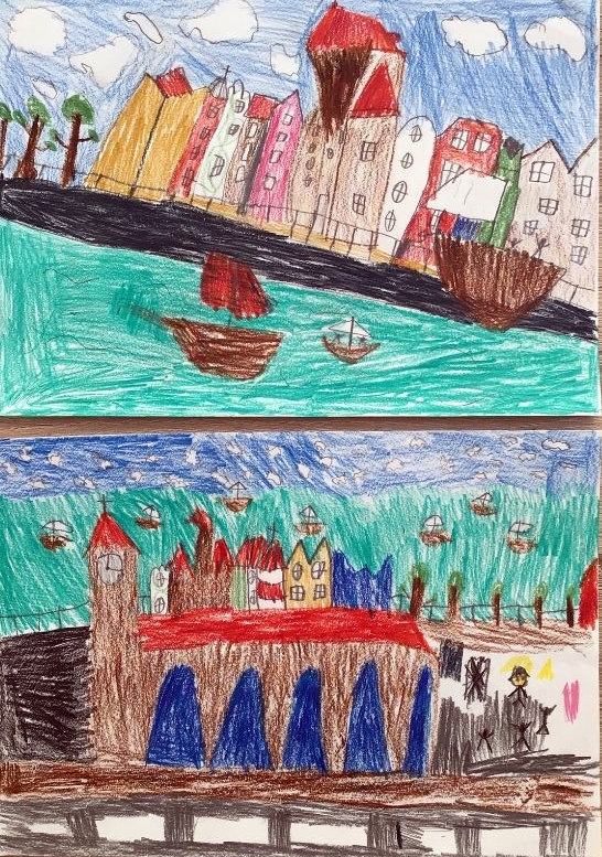 „My, uczniowie z I Społecznej Szkoły Podstawowej STO w Oliwie podczas , gdy nikomu nie dane było rozkoszować się swoim towarzystwem i miejskim pejzażem z wielką przyjemnością, (oczywiście wirtualnie) przechadzaliśmy się z Panią Kasią ulicami Gdańska. Bardzo jesteśmy wdzięczni za pełną humoru i ciekawostek wycieczkę „Śladami gotyku”. Ależ piękne jest to nasze miasto i jego zabytki, aż chce się wziąć farby i kredki… więc cóż .. wzięliśmy! I tak, inspirując się opowieściami Pani Kasi, powstały nasze prace, które przesyłamy w załączniku 🙂 Serdecznie dziękujemy – Uczniowie ISSP STO Polanki”.